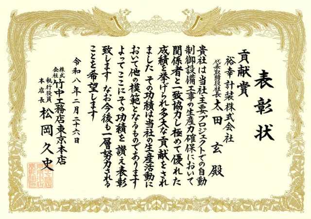 インフォメーション 2026/02/26 竹中工務店「協力会社貢献賞」受賞のお知らせ この度弊社は、竹中工務店様より「協力会社貢献賞」に選出されました。JR広町プロジェクトおよび小田原病院プロジェクトにおける活動を総合的にご評価いただいたものです。関係各位のご支援に感謝申し上げるとともに、今後も誠実に取り組んでまいります。